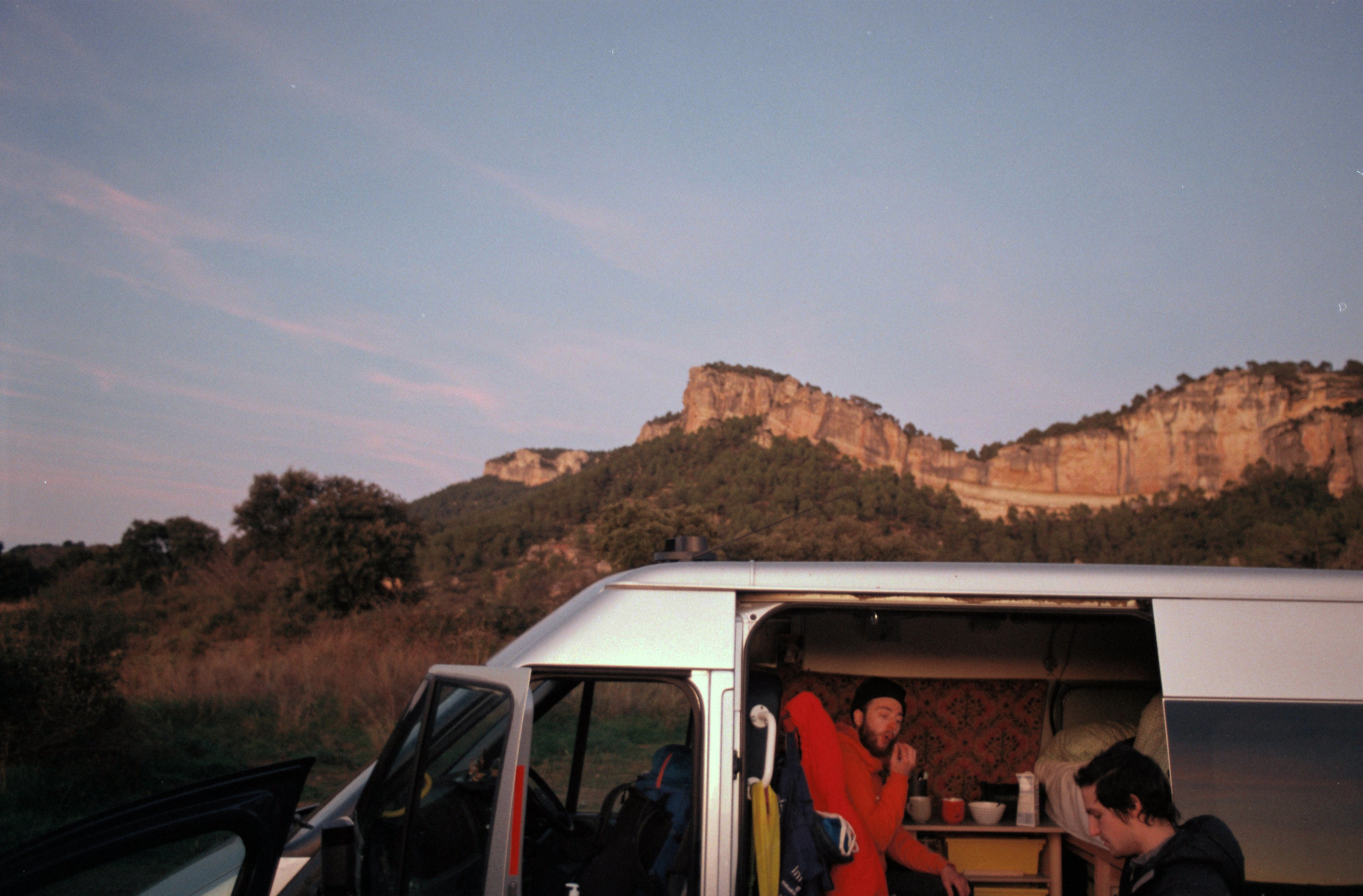 We spent one night at the enormous layby on the road up to Siurana village. Van city is owned by Francisco, a 70-something year old gentleman who grew up on the local olive groves and played football for Margalef in his youth. Every morning he does the rounds on his layby and welcomes the campers to his kingdom. Rumour has it he owns the bakery in Cornudella that does well from the climbers, which is why he’s happy for them to stay in his layby for free.