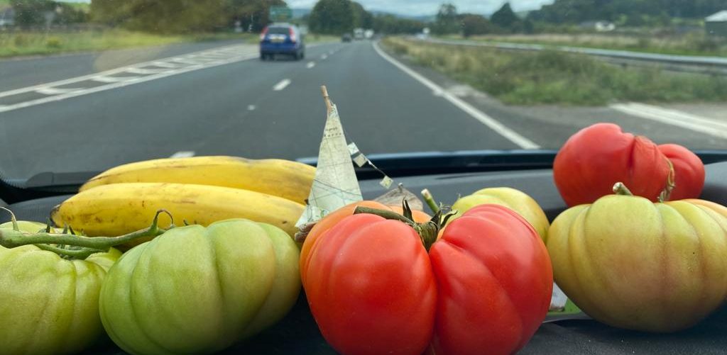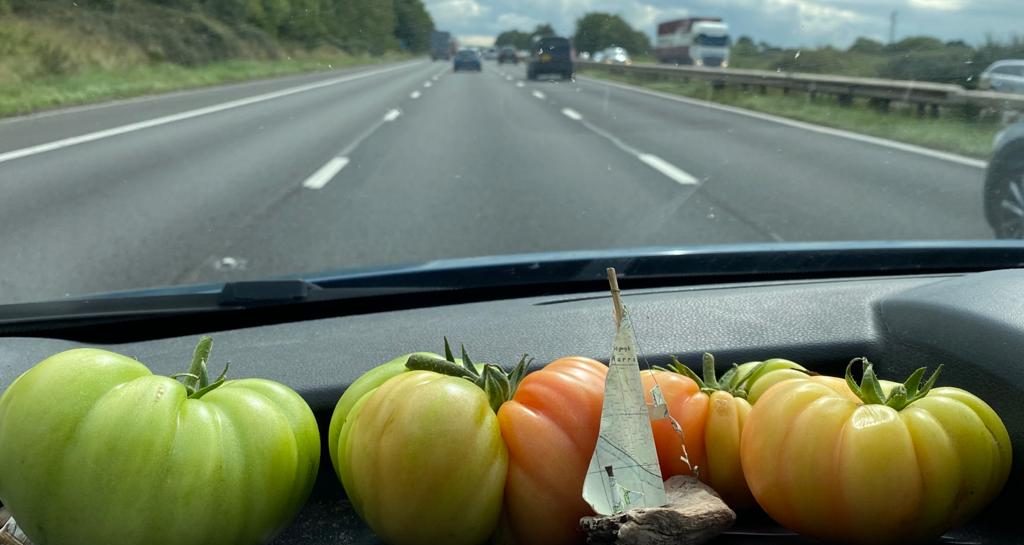 Tomatoes looking a little green, but excited at the prospect of a well-earned holiday